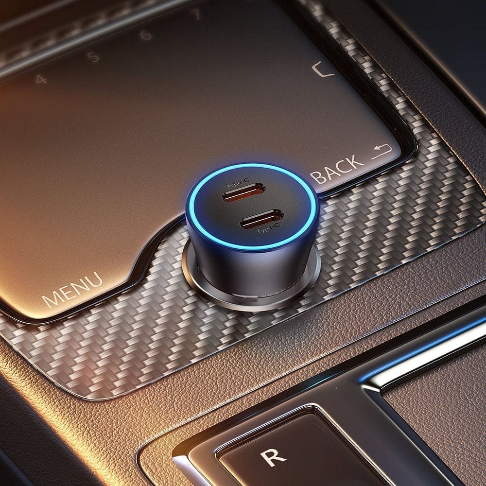 Inteligentná nabíjačka do auta s dvoma portami USB-C podporujúcimi najnovšie technológie rýchleho nabíjania: Power Delivery 3.0 (PD 3.0) a Quick Charge 4.0 (QC 4.0), SCP (Huawei) a AFC (Samsung).
