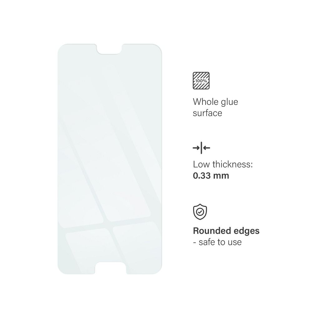 Sklo bolo vyrobené v horúcej technológii ohýbania HOT – sklenené krivky sa tvoria horúce, vďaka čomu je sklo stále dokonale reprodukuje obraz a znižuje všetky skreslenie. Okraje skla sú zaoblené, čo zaručuje bezpečné použitie a tenký vzorec nezahrší telefón bez narušenia s použitím prekrytí.