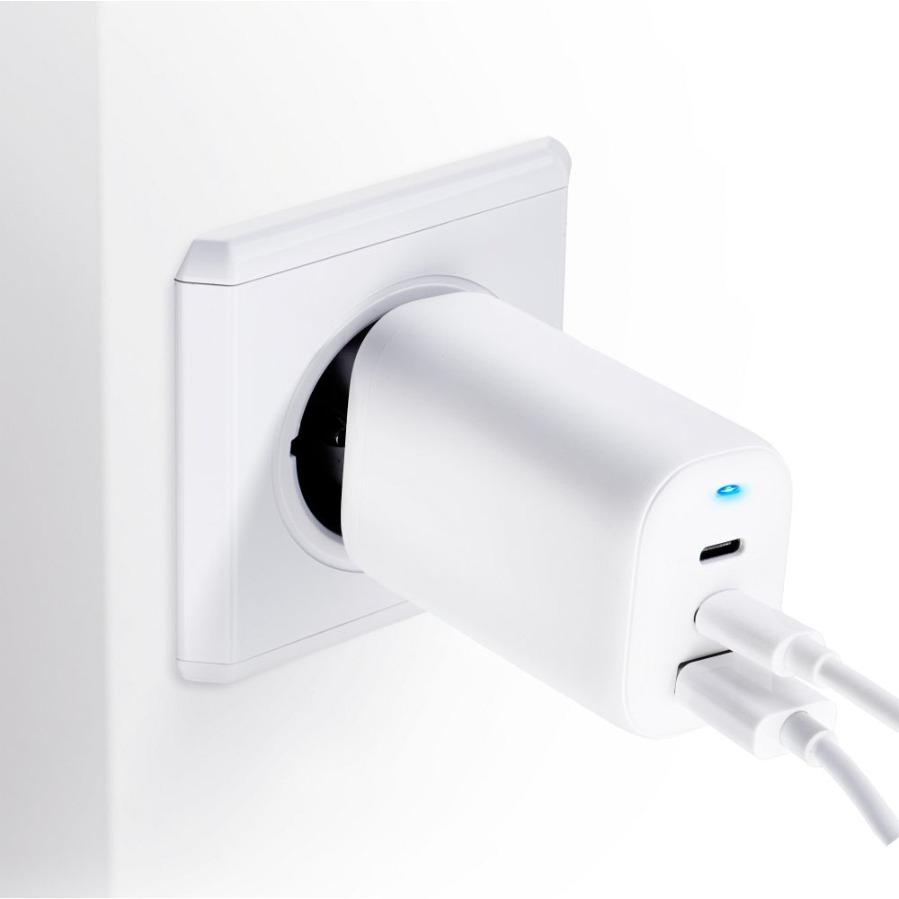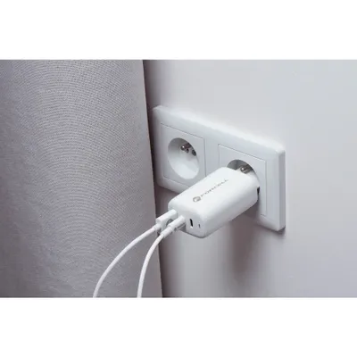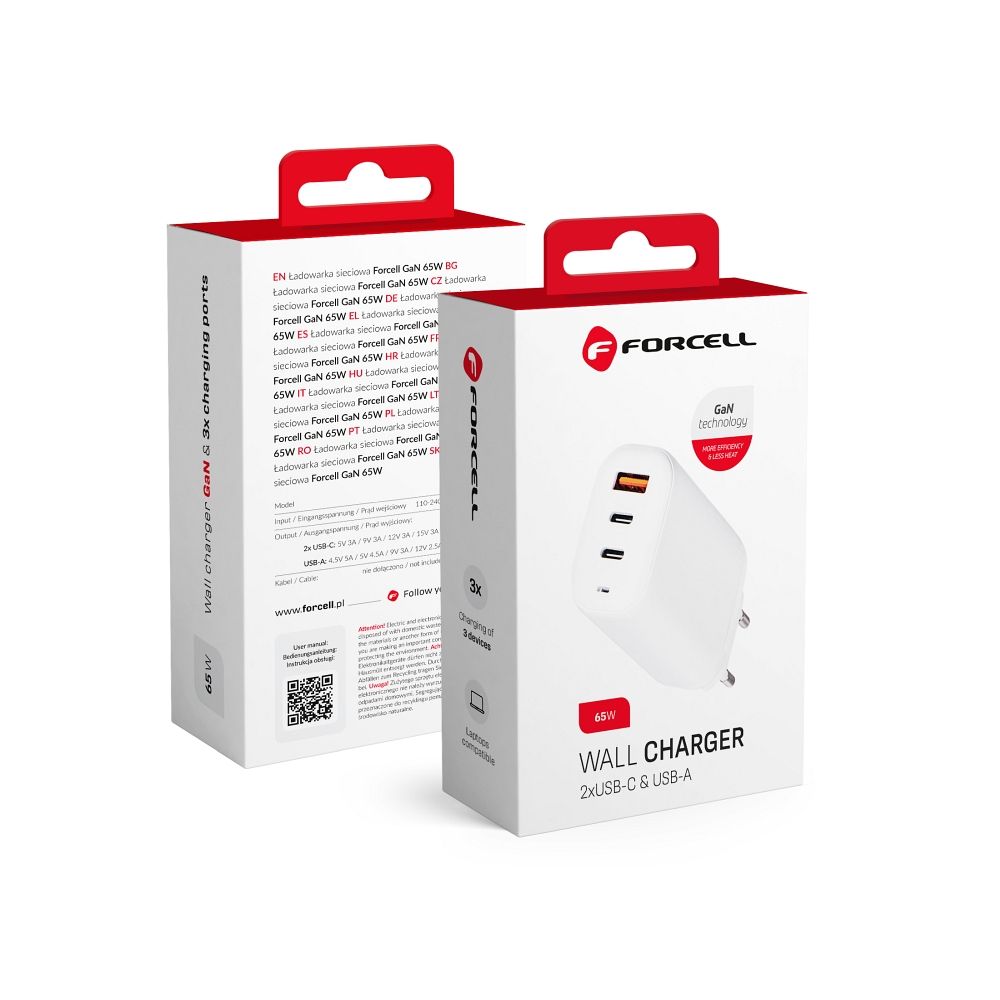 Nástenná nabíjačka Forcell GaN 65W je kompaktné príslušenstvo, ktoré ponúka vysoký prenos výkonu.