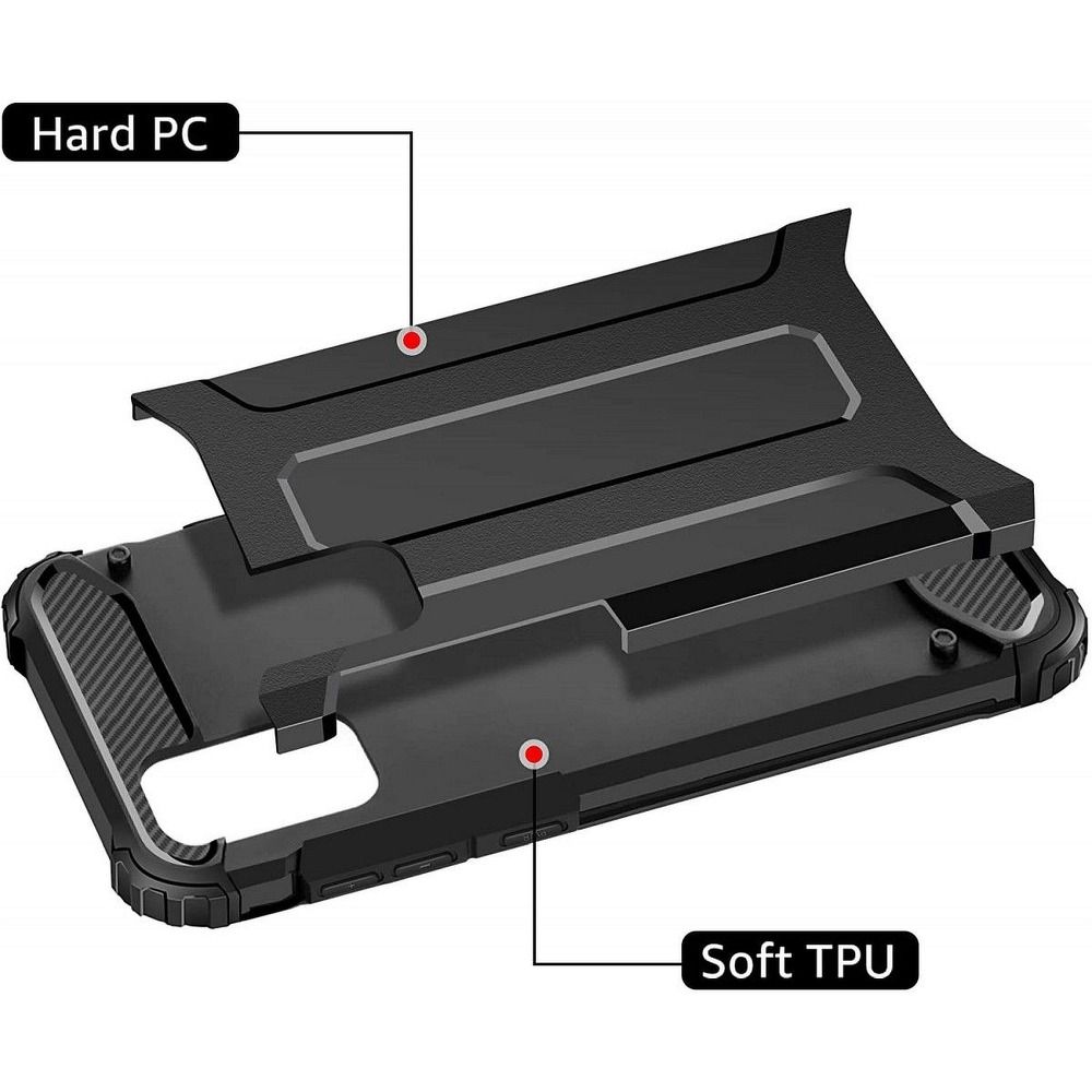 Hybridná štruktúra dvoch kusov je vyrobená z odolného PC a termoplastického TPU. Kombinácia týchto prvkov robí puzdro extrémne solídny a odolný a telefón pečený pred poškriabaním, poškodením a špinou.