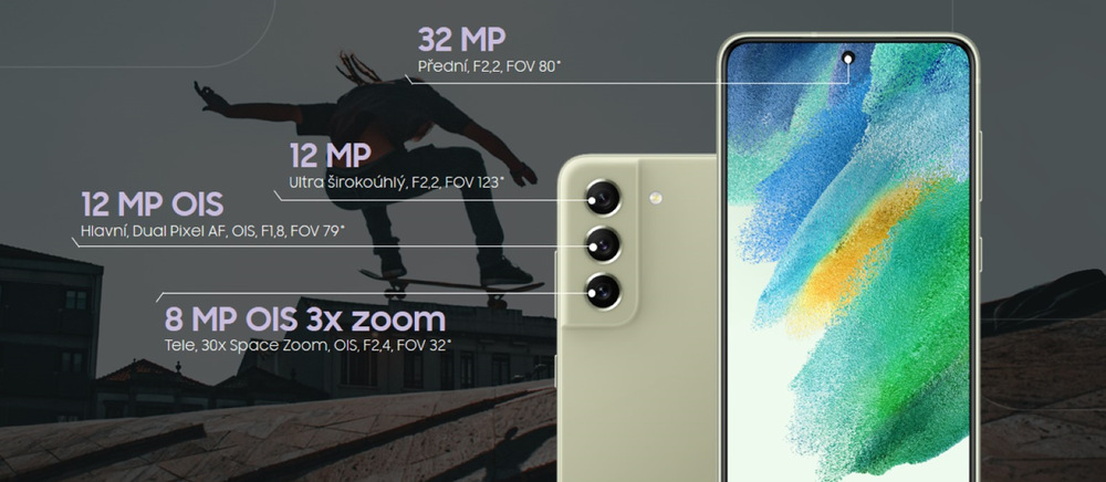 Nekompromisné sú aj fotoaparáty – na zadnej strane sú hneď tri, zatiaľ čo vpredu je 32 Mpx selfie kamerka pre perfektné portréty. Galaxy S21 FE samozrejme podporuje 5G a taktiež je odolný podľa IP68.