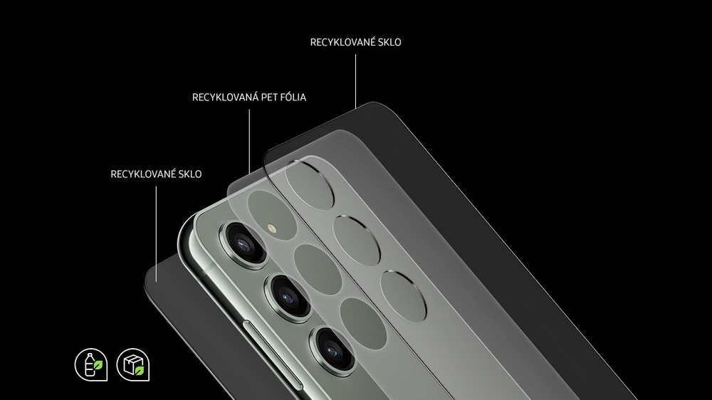 Rozbaľte zmenu, ktorú chcete vo svete vidieť. Každý telefón je vyrobený z recyklovaného skla a PET fólie a zafarbený prírodnými farbivami. Nájdete ho v krabičke vyrobenej z recyklovaného papiera a ochrannej fólie na báze papiera.