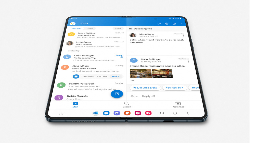 Využite veľkú vnútornú obrazovku na maximum. So šikovnými softvérovými vylepšeniami je multitasking pohodlnejší ako kedykoľvek predtým. K dispozícii máte okrem iného hlavný panel, ktorý je podobný tým, ktoré poznáte z počítačových operačných systémov. Užitočná je napríklad aj funkcia App Pair, ktorá vám umožní spustiť naraz až tri aplikácie, a to vo vopred určenom rozložení. Môžete napríklad vyberať tovar v e-shope a rovno výber konzultovať s priateľmi v chate alebo počas pracovného videohovoru prechádzať poznámky. Kreativite a efektivite sa medze nekladú.